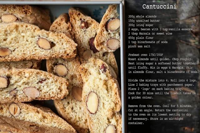 These gorgeous cantuccini are made from a recipe I adapted from Jeremy Lee from when he was at the Blue Print cafe. The recipe appeared in the Guardian in 2000. Jeremy credits his pastry chef 'Andeas' with the recipe which works wonderfully. Cantuccini last for ages in an airtight container and give all of the shop bought ones a run for their money. Traditionally served with vin santo the sweet Italian dessert wine but equally lovely dunked in cappuccino or any dark sweet wine or sherry.